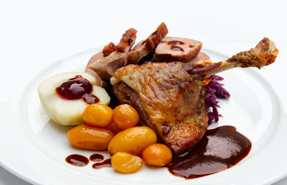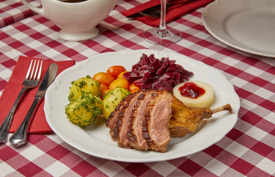 Midt i Odense centrum ligger Klosterkroen, som er et sted, hvor man nærmest træder direkte ind i en tidslomme. Den hyggelige kro byder på klassiske danske retter og ægte krostemning med ternede duge og stearinlys på bordene. Til Mortensaften kan du glæde dig til en traditionel andemenu med sprødstegt and, hjemmelavet rødkål, brunede kartofler og skysovs, præcis som den skal være.