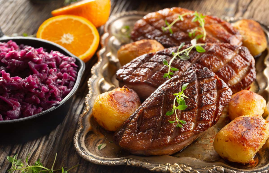 Kendt for sine charmerende selskabslokaler og behagelige atmosfære. Men vidste du, at du også kan få din Mortensaften leveret lige til døren? Menuen består af sprødstegt and, hjemmelavet rødkål, kartofler og skysovs. Et oplagt valg for dig, der vil nyde en ægte Mortensaften menu hjemme privat.